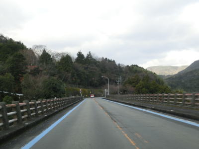 | 宇和島市に入ってからは須賀川ダム湖の南側を緩やかに下って行く。小さなダム湖畔でありカーブは少ない。鮎返隧道を通過し、やや急な勾配を下った先で新折付橋を渡、西詰で右の急カーブを曲がる。さらに左、右と急カーブを曲がって須賀川ダムの南を通過する。 | ||