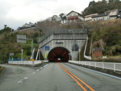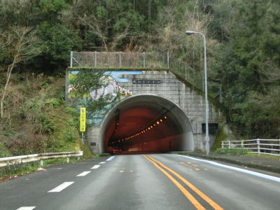 | 須賀川ダムを過ぎてすぐに左カーブを曲がり、やや急な勾配を下っていると柿原トンネルに入る。その後、丸穂トンネルと天神トンネルを相次いで通過する。3つ連続して500m弱〜1000m超のトンネルがあるが。宇和島市の市街地に近い場所であり、天神トンネルに関しては坑口付近の上に家屋が建っている。 | ||