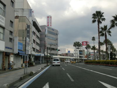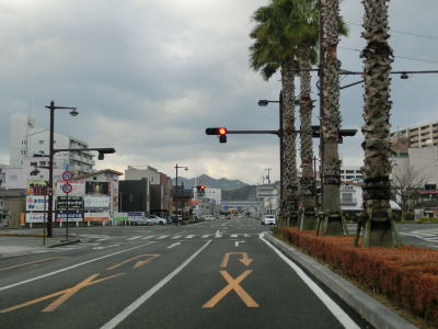 | 184.市道との交差点を道なりに左へ進む | 185.宇和島駅前は4車線 | 186.R56・R320・愛媛r268栄町港交差点 |