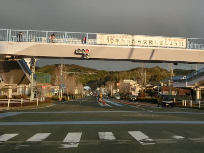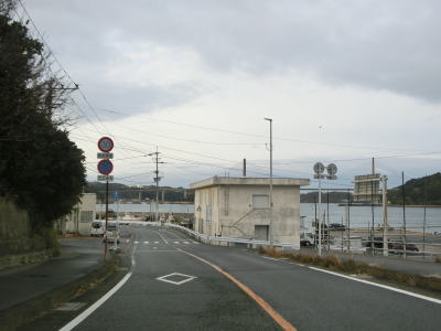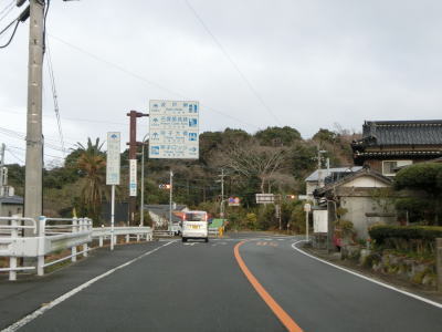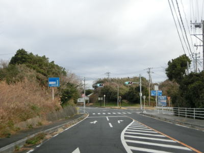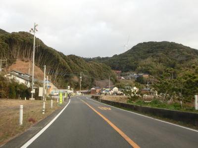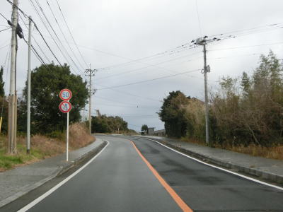 | 土器崎にある七ッ釜に至る市道との交差点を通過した先で旧鎮西町に入る。旧市町境付近はやや急なカーブが連続しているが、交通量が少ないせいもあって走りにくさはあまり感じない。 | ||