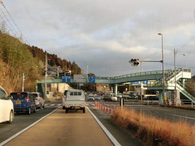 | 24.湊町を過ぎると上り勾配 | 25.法面崩落のため片側交互通行規制中 | 26.崩落個所の直後に1.5車線幅区間 |