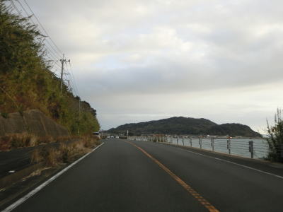 | 相賀集落を通り抜けると水田の間の直線道路を走る。相賀の松原の西側を通り過ぎると海岸線に近い場所を走り、志坂鼻の根元を通過する。海岸線に沿っている道路が旧道だが出入口が閉鎖されているため進入できない。湊町集落に入ると周辺の家屋が増えるが、歩道が設置されており走りやすい。 | ||