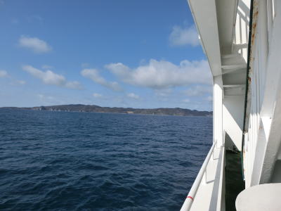 | 呼子港の端点からフェリーの出る唐津東港までは約15km、20分程度である。一日当たり5往復(通常時)と不便でない程度の便数である。今回は10:20唐津東港発、12:05印通寺港着の2便目を利用している。乗船手続きとしては申込書を記入して車検証とともに窓口に提出するというお馴染みの手順である。フェリー乗船車両の駐車に関しては、閑散期の平日で乗船台数が少なかったせいもあるかもしれないが、適当に空いている所に停める感じであった。乗船券は下船時に回収するという事だったが、回収されなかった。 | ||