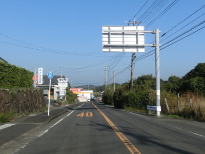 | 普通の2車線道路になってからは勾配を上り続ける事になる。緩やかカーブをいくつか通過しながら勾配を上っていると平戸大橋バイパスとの岩の上大橋交差点に至る。現道の距離は約3.5kmで、僅か150mの一方通行区間があるために走行方向が限られてしまう。 | ||