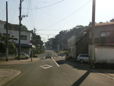 | 4.市街地にはセンターラインなし区間もある | 5.長崎r19交差点 | 6.アスファルトではなくブロック舗装になる |