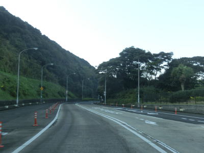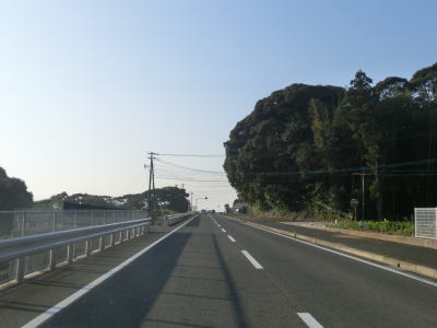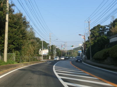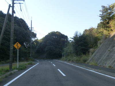 | その後は海から少し内陸に入った高台を走っているが、道幅は1.8車線幅と2車線が混在している。交通量は少ないものの意外に大型ダンプが走っており、離合の際には多少気を遣う。カーブ部分を中心に大型ダンプや大型バス同士の離合ができない箇所もある。 | ||