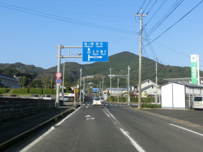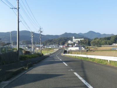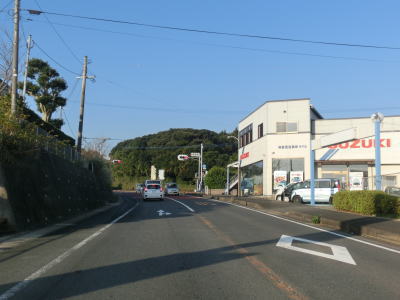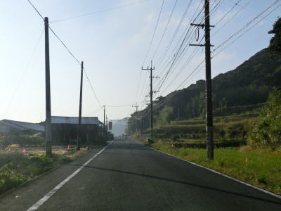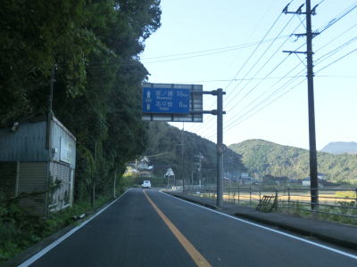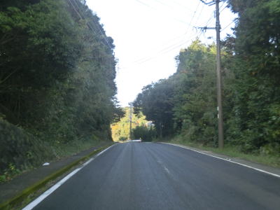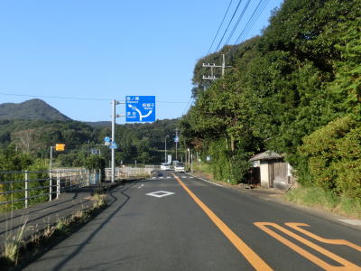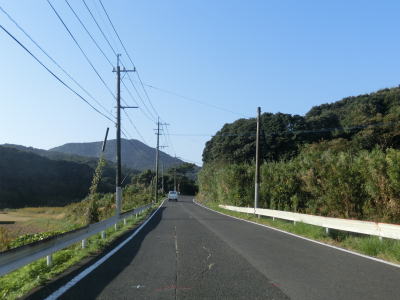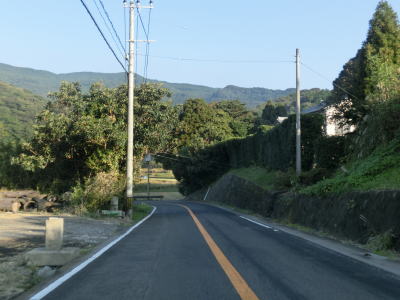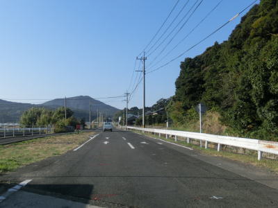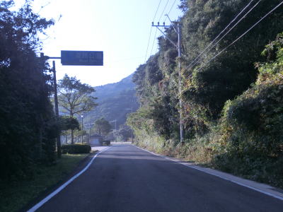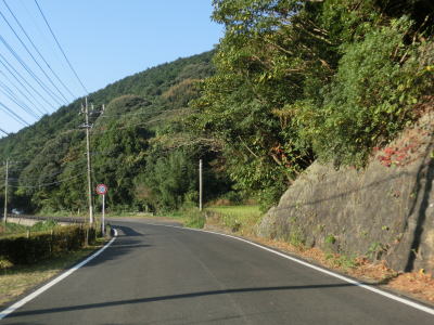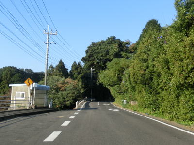 | センターラインのない1.8〜2.0車線道路を走っていると緩やかな勾配を上ってから峠部分を通過して緩やかに下る。やや急な左カーブを曲がると志々伎町集落に入り、平坦かつ直線的な2車線道路を走る。 | ||