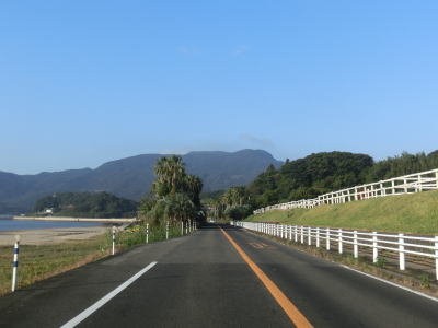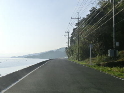 | 60.川内湾に沿って走る | 61.道路公園という名の駐車帯 | 62.前方に見えているのは平子島? |