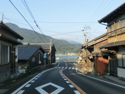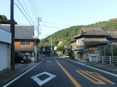 | 81.緩やかな勾配の1.8車線幅道路 | 82.志々伎町集落に差し掛かる | 83.駐車禁止区間が始まる |