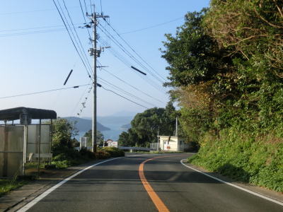 | 川内港の海沿いを走っていると上り勾配となってまたしても海から離れる。道路公園という名の駐車帯が設置されており、駐車スペースは狭いもののトイレが設置されている。道路公園から少し走るとセンターライン付きの2車線道路になるが、車線幅はやや狭い。 | ||