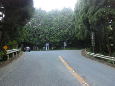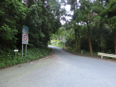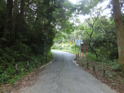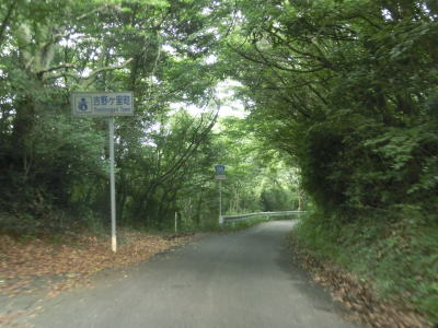 | 永山林道第一支線から100mも走らないうちにまた吉野ヶ里町の町境標識を通過する。県境と永山林道第一支線交差点の間で吉野ヶ里町に入ったが実はみやき町を走っていたのかもしれない。現地の町境標識の位置に町境を表示しているのはウォッちずではなくグーグルマップである。 完全に吉野ヶ里町に入る町境は坂本峠とされているが、全く峠らしくない風景である。しかし勾配は下りに転ずる事からやはり峠なのだろう。峠以北と同様に1.0〜1.5車線の離合困難な狭路となっている。離合用のスペースは設置されておらず、対向車が現れたら少しでも幅の広い場所を見つけてそこで離合しなければならない。 |