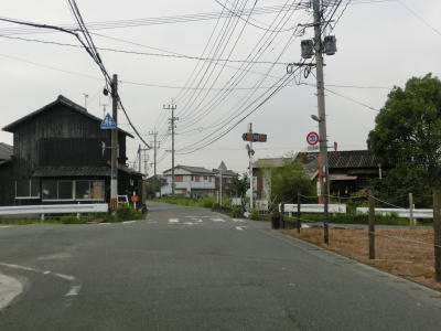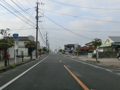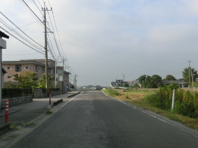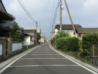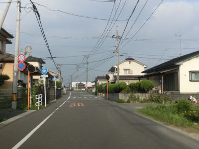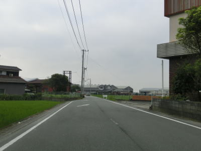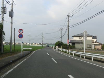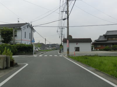 | 住宅地の中を通り抜けている1.0〜1.5車線狭路を走っていると大川東中学校の西を通過し、道幅が2.0車線にまで広くなりその状態で大川東中学校南交差点を通過する。が、交差点からすぐに道幅がまた狭くなる。家屋が近接していたり水田の脇では人様の敷地侵入離合ができないため、停止して対向車をやり過ごす必要もある。交通量の多いこの区間はそのシーンには何度も遭遇する。 | ||