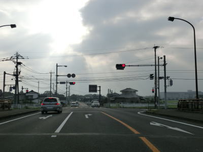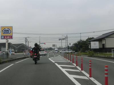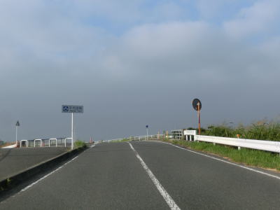 | 104.田手川の堤防上を走る | 105.堤防を上ったり下りたりする | 106.佐賀r15交差点を一時停止して左折 |