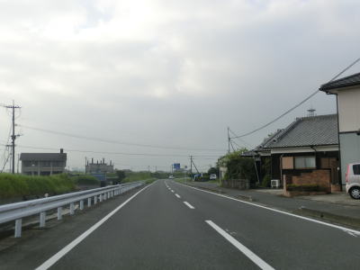 | 柳川市に入ってからはバイパスと並走していないとあってさらに交通量が多い。道幅は1.0〜1.5車線幅と狭く、離合できる場所が少ないため対向車が来るたびに待ったり待たれたりを繰り返さなければならない。乗用車だけならまだしも4t程度の車両も通行しているのでさらに厄介である。軒先酷道としての酷道レベルは★3つだが、対向車の多さを考慮して★4つに引き上げている。 三百交差点から約3.0kmで東蒲池交差点に至る。交差点付近のガードレールは三橋大川バイパスとして整備されている箇所であり、未開通区間の南端でもある。2015年8月現在は300m程度と中途半端な距離だけ供用されているが、その短さ故に現道の交通量減少にはほとんど寄与していないと思われる。 |