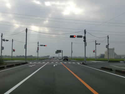 | 121.横断歩道の線は6本 | 122.大川東中学校南交差点の前後は広い | 123.大川東中学校南交差点以南も狭い |