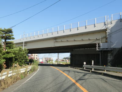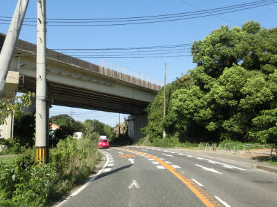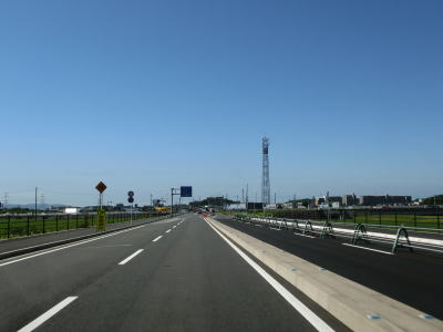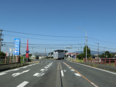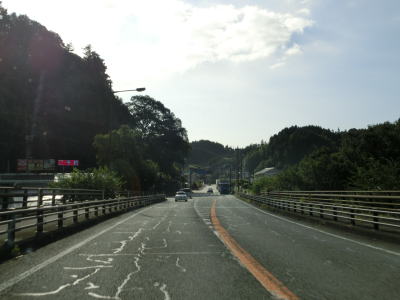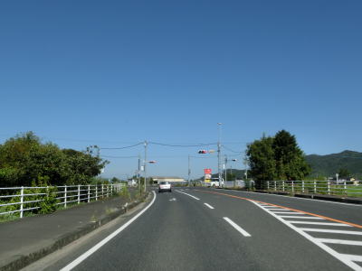 | 杷木ICを過ぎてからも沿線に家屋の多い状態が続くが、それらが少なくなってきた所で道の駅「原鶴」を通過する。道の駅の前を通り過ぎると右にカーブし、上部に市道が通っている堤防の外側を走る。 | ||