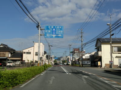 | 三芳小渕町交差点の直後に佐賀と久留米までの距離を示す案内標識があるが、その2つはR212もR386のどちらも通っていないし、どちらかと言うと格下のR386の行き先である。また、おにぎりはR386しか設置されていない。 日田駅のほぼ真南で大分r9・r48元町交差点を通過するが、ここはR386の起点だった交差点である。R210の日田バイパスが全線開通した際に経路変更が行われて現在の小ヶ瀬(1)交差点に起点が移動している。 |