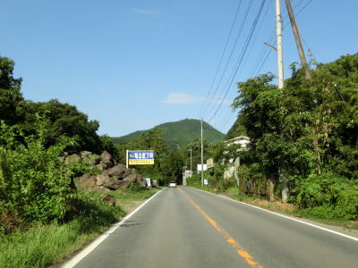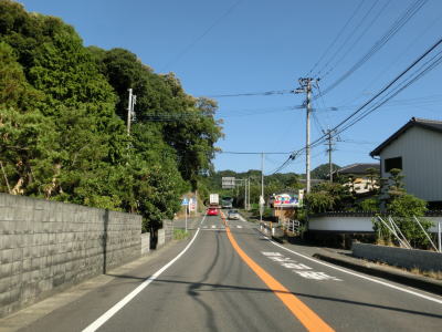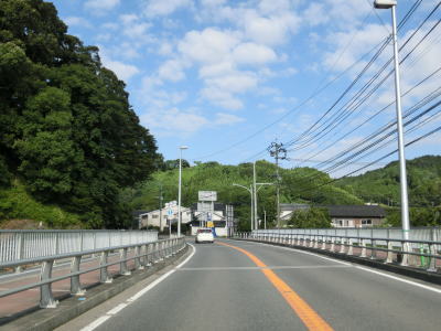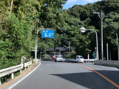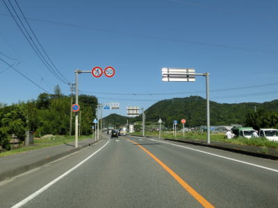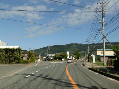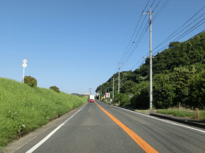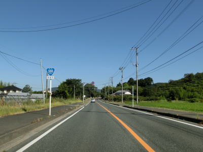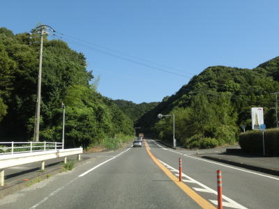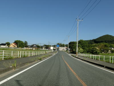 | 九州電力の夜明発電所のすぐ近くで小さな川を渡って福岡県朝倉市に入る。険しい峠ではないためどちら側にも家屋が建っていて県境感は薄い。朝倉市に入ってから西の筑後川は県境ではなくなるものの左岸のうきは市との市境となっている。 朝倉市に入って少し走ると筑後川から離れて平坦な2車線道路を走る。杷木神籠石の手前にやや急なカーブがあるが、それを除けばカーブはほとんどないため走りやすい道路状況である。旧道らしき市道との交差点を道なりに右にカーブしながら通過する。 |