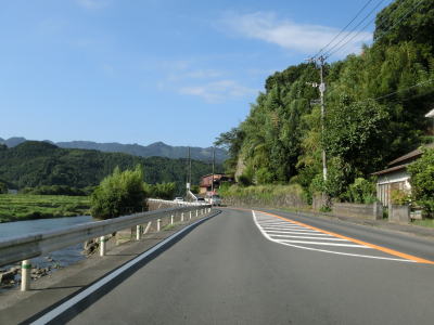 | 22.引き続き三隈川沿いを走る | 23.対岸に見えるのはR210の虹峠洞門 | 24.杷木山集落 |