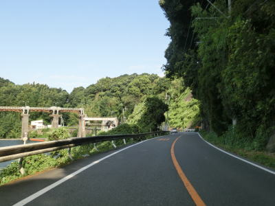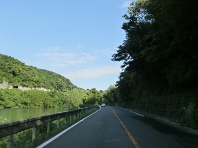 | 堤防の上の道路が市道から福岡r587になり、堤防道路が緩やかに下ってきた先で原鶴温泉入口交差点を通過する。R386からr587への左折はかなり鋭角になっているためか、左折が禁止されている。原鶴温泉入口交差点を過ぎると少しだけ筑後川沿いを走って福岡r588交差点を通過する。そのすぐ先で大分道の志波高架橋の下をくぐるが、左にカーブした後にももう1回くぐっている。 | ||