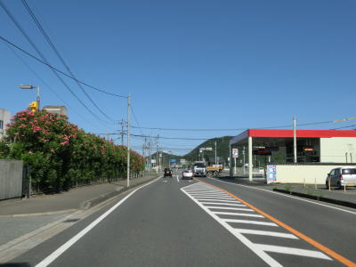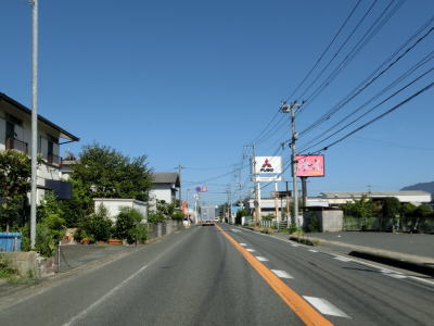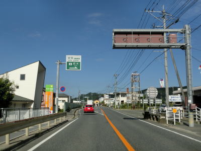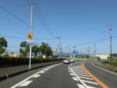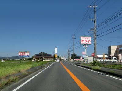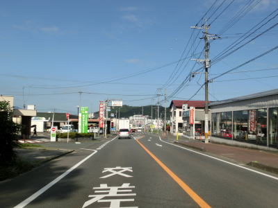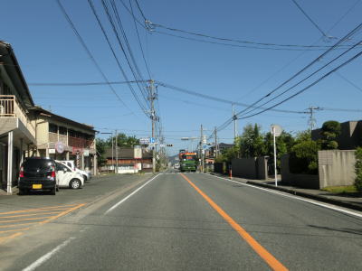 | 玉川交差点を過ぎてからも沿線には所業施設が多く賑やかな雰囲気の中を走る。道路状況は路側帯が広めに取られているためこれまでよりも走りやすいと感じる。緩やかにカーブしている三郎橋を渡る。 三郎丸橋を渡って以降は沿線には通常の家屋が中心となり、また市街地を出るため家屋の数自体が少なくなる。星隈橋の西詰では市道との北友田3交差点を通過するが、この市道はR212・R496の耶馬渓・中津方面や日田ICとを繋ぐルートにあるため意外に交通量が多い。 |