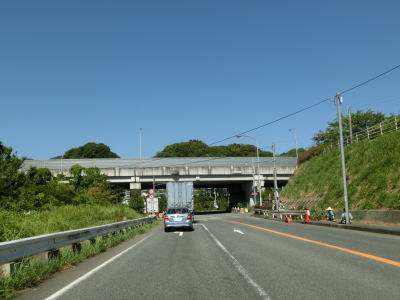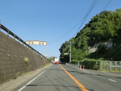 | 普及センター前交差点を過ぎると上り勾配となると同時に山の中を走るようになる。非常に緩やかな右カーブを曲がっていると山平トンネルに入る。トンネルからは下り勾配をなって程なくして視界が開けて平野部に入る。 | ||