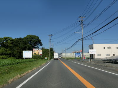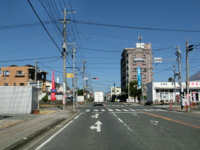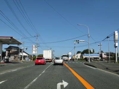 | 周囲の建物が増えてきた所で筑前町の中心部を通過する。その後は幾分か長閑な風景となるが交通量は多いままである。やや流れが悪くなり始めた2車線道路を走っていると福岡r595いしびつ交差点を通過する。信号機は設置されているものの全ての方向において右折車線が設置されていない。 | ||