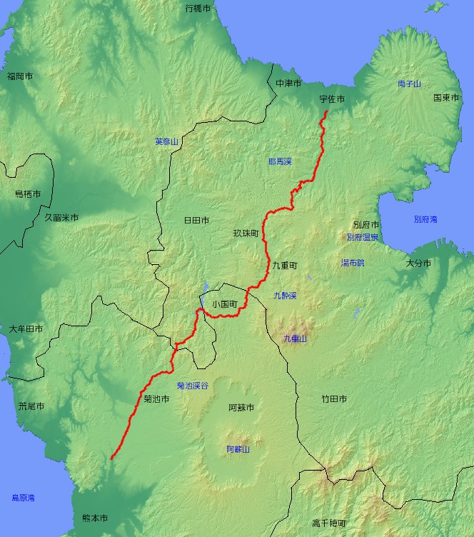 | 主な経由地 | 熊本県熊本市〜菊池市〜 〜大分県日田市〜 〜熊本県小国町〜 〜大分県九重町〜玖珠町〜宇佐市 |
