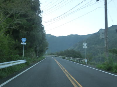| 河内湾の西側を走っているとセンターラインが復活して2車線道路になる。湾の最奥部で大分r687交差点を通過して海から離れて緩やかな勾配を上る。旧道との交差点を通過した後に山トンネルをくぐる。 | ||
