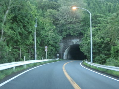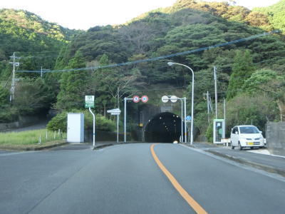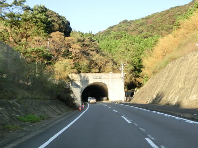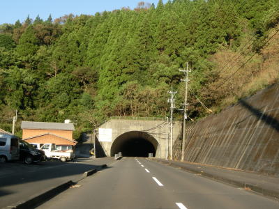 | 集落が途切れると上り勾配となるが2車線という道路状況は維持されたままである。大中尾ダムの東で大中尾トンネルをくぐり、さらに上ると畑野浦トンネルをくぐる。後者はかつて佐伯市と蒲江町の境だったトンネルである。 | ||