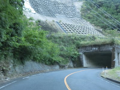 | 畑野浦トンネルを出るとやや急な勾配を下って行く。勾配もさることながら急カーブが多く、旧佐伯市側とは道路状況が大きく異なる。右のヘアピンカーブの先で無の谷トンネルをくぐるが、トンネルと付けられているが見た目は完全にロックシェッドである。複数の急カーブを曲がりながら下っていると豊後くろしおラインという広域農道との交差点を通過する。 | ||