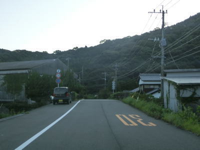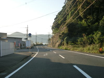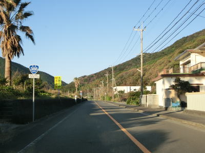 | 下り松鼻付近でセンターライン付きの2車線道路になるが、すぐに狭くなってしまう。乗用車同士であれば離合できなくもない道幅だが、海に沿っており小刻みなカーブが多く見通しが悪く意外に交通量があるので厄介である。楠本湾の最奥で楠本浦集落を通過するが、集落内も狭いままである。 | ||
