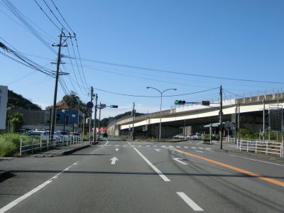 | 宮崎r226とJR日豊本線を挟み込むようにして緩やかな勾配を上っていると名もなき峠を越えて門川町に入る。左にカーブしている下り勾配を走っていると船越交差点を通過してE10東九州道の門川ICのランプに上下線が分離される。反対側車線と合流すると同時に門川ICのランプも合流するため、以降は片側2車線道路になる。前述の通り、延岡南ICから南の区間は有料だが、門川ICまで無料であればR388(実質R10)の対面2車線区間の交通量はもっと減少すると思われる。 | ||