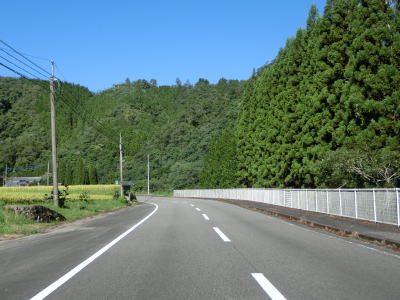 | 宮崎r225交差点を右にカーブしながら通過するが、以降は沿線の家屋が目に見えて少なくなる。一方で道路状況には変化がなく、これまでと変わらず五十鈴川の左岸を走る。交通量が少ないせいもあって快適に走る事ができる。 | ||