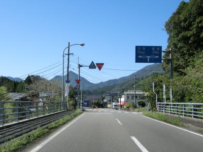 | 和田越トンネルからの勾配が落ち着いた所で和田大橋を渡り、南詰でR327・R503交差点に突き当たる。案内標識にR388は表記されていないが、左折して日向・南郷方面に進む。R503はR327の両方向に重複しており、ここから先は2ヶ所目の3国道重複区間である。 | ||