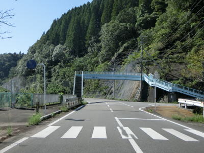 | 美郷町に入った直後にセンターラインが描かれた区間があるが、距離が短いため2車線道路とは言い難い。法面に落石防止ネットが張られており、その工事のついでに整備されたのだろうか。その後はこれまでと同じ1.5車線幅の狭路が続く。視界が開けた後に追分橋を渡って黒木集落に差し掛かる。 | ||