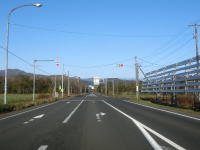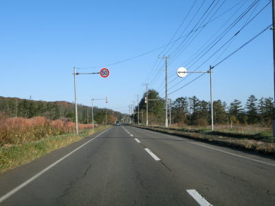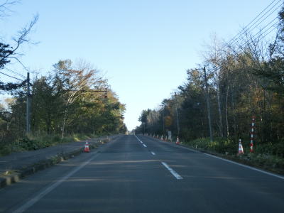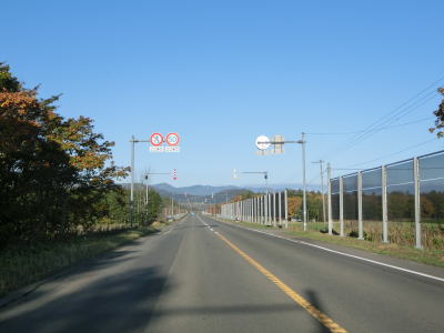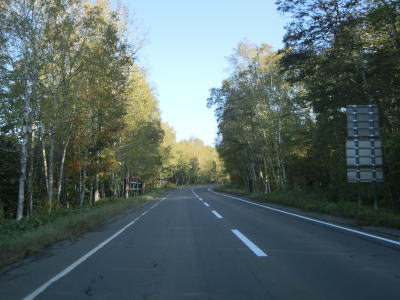 | 2車線快走路を走っていると中央分離帯が現れ、カーブを過ぎると通常の対面2車線道路に戻る。カーブ部分での追越しをさせないために設置されたものと思われる。その後は直線道路が続いており、交通量が少ない事もあって非常に走りやすい。東側を並走しているJR釧網本線はカーブが多い。 | ||