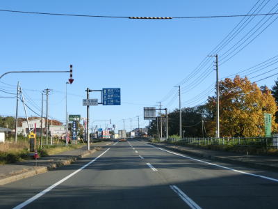 | 緩やかな勾配を上って札友内跨線橋を通るが、その下にはこれまで並走しているJR釧網本線が通っている。跨線橋からの勾配を下り切った直後でR243札友内交差点に至り、右折して網走・川湯温泉方面に進む。この交差点でR243から分岐して約6.4kmの重複区間が終わる。 | ||