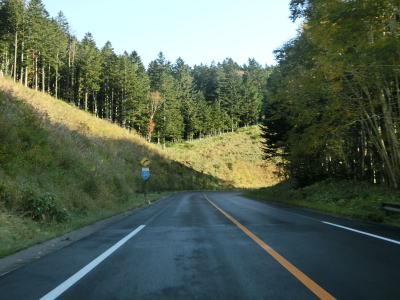 | 標高200m付近で右急カーブを曲がるが、以降は急なカーブが多くなる。一方で勾配はさほど急ではないうえにセンターライン付きの2車線道路とあって走りにくさはあまり感じない。標高320mの野上峠を越えると小清水町に入る。この町境は振興局の境でもあり、釧路総合振興局からオホーツク総合振興局に入る。 | ||