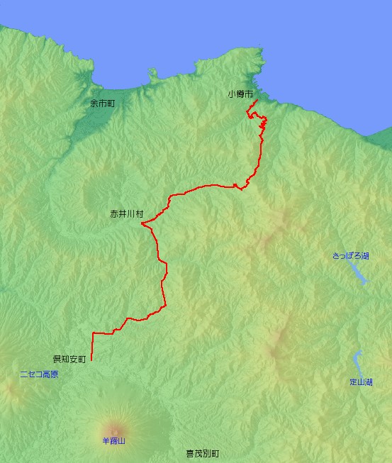| 主な経由地 | 北海道小樽市〜赤井川村〜倶知安町 |