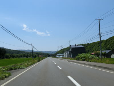 | ポンクトサン川の右岸流域を緩やかにアップダウンしながら真西に向かって進む。樺立トンネルを出てから約10.0kmで町道との十字路を左折する。すると再び正面やや左に羊蹄山を見ながら真南に向かって走る。 | ||