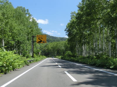 | r36交差点から約8.8kmで樺立トンネルに入る。全長2001mのトンネルは赤井川村と倶知安町の境であり、分断区間を解消した長大トンネルである。トンネルを抜けると下り勾配となり赤井川村側と同様に急勾配・急カーブに注意を促す標識が立てられている。勾配もカーブも急だが幅に余裕のある2車線道路とあって決して走りにくい道路状況ではない。ポンクトサン川に沿った明るい雰囲気の谷筋(?)を走っていると赤井川道路区間が終わる。 | ||