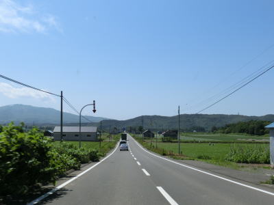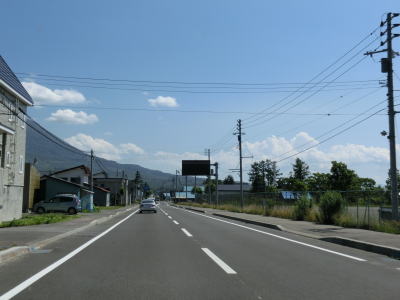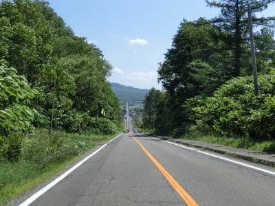 | 分断区間を解消した赤井川道路が終わってからも走りやすい2車線道路が続いている。家屋が点在している所まで来ると勾配は緩やかになるが、時折直角カーブを含む急カーブが待ち構えている。左直角カーブを曲がると正面に蝦夷富士とも呼ばれる羊蹄山が見えるが、すぐに右にカーブして正面からズレてしまう。 | ||