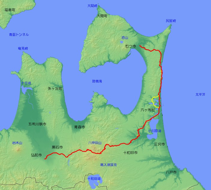 | 主な経由地 | 青森県むつ市〜六ヶ所村〜七戸町〜十和田市〜青森市〜黒石市〜弘前市 |