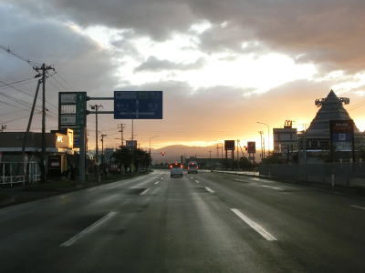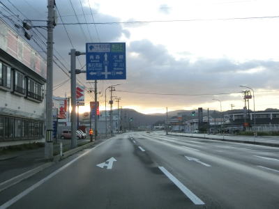 | 青森県弘前市の市街地の南東に位置するR7・R102・R339・青森r109運動公園入口交差点がR394の終点であり、青森県西部〜十和田湖〜十和田市からさらにむつ市を結ぶルートである。しかしR102に重複しているため案内標識には表記されていない。同様に表記されていないR339はR7の青森方面に重複している。 運動公園入口交差点から走り始めると片側3車線とよく整備された道路を走り、すぐに青森r128交差点を通過する。沿線には商業施設が多く昼間であればR7とともに交通量が多いであろう事は想像に難くない。 |