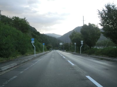 | 火流し橋を渡って右にカーブして大川原の北を通り抜けて中野川の右岸を走る。川はかなり蛇行しているが、R394は改良されているため多少のカーブはあものの快走路と言える道路状況である。長い上り勾配が続いているが急勾配と言う程ではない。 | ||