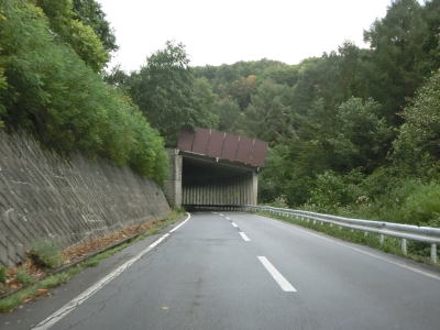 | 中野川の右岸を上っていると支流に沿うようになり、右カーブを曲がった先でロックシェッドを2つ続けて通過する。1つ目のロックシェッド内は右のヘアピンカーブとなっており、2つ目のロックシェッドを出てからは左のヘアピンカーブがある。 | ||