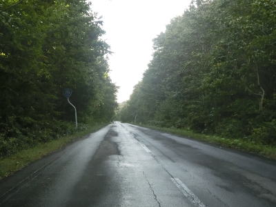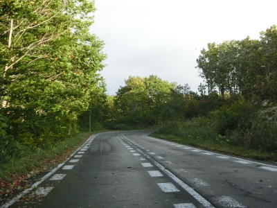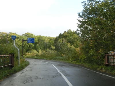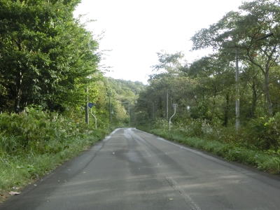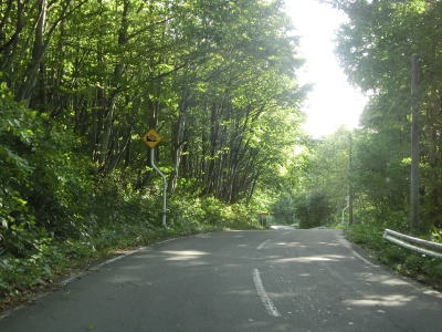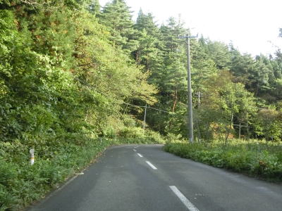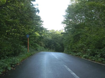 | 町営牧場を通り抜けてはらも下り勾配の2車線道路が続いている。左の急カーブで市町境を越えて七戸町に入る。境標識が設置されていたものの十和田市域を通っている距離は約3.9kmしかなく、沿線にあるのは七戸町営の牧場だけである。 七戸町に入ってからはカーブが多くなるうえに勾配も急になる。12%勾配区間を過ぎたと思った矢先にさらに急な16%勾配区間を走る。その後はヘアピンカーブを含めたカーブ連続地帯を走る。 |