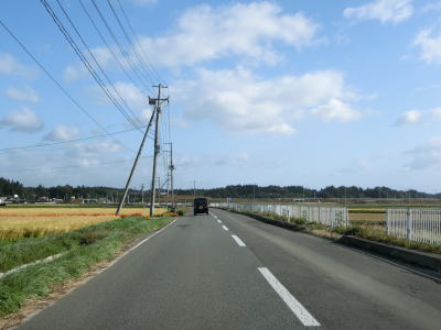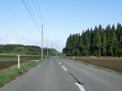 | 青森r25交差点からも家屋と田畑が混在する風景を走り抜ける快走路が続いている。多少のアップダウンやカーブがあるがこれまで同様に走りやすい道路状況と言える。直線区間を走っていると六ヶ所村に入る。 | ||