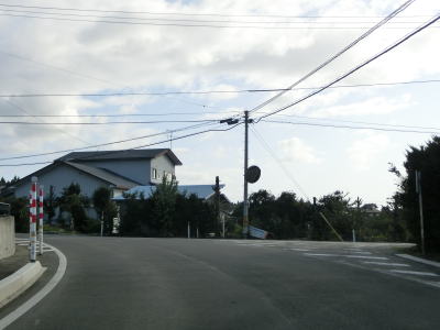| 114.旧道(?)との交差点は道なりに右へカーブ | 115.交通量は少ない | 116.水田だけでなく畑らしきものもある |